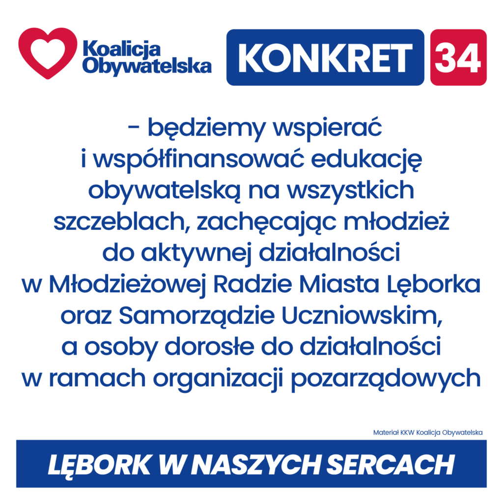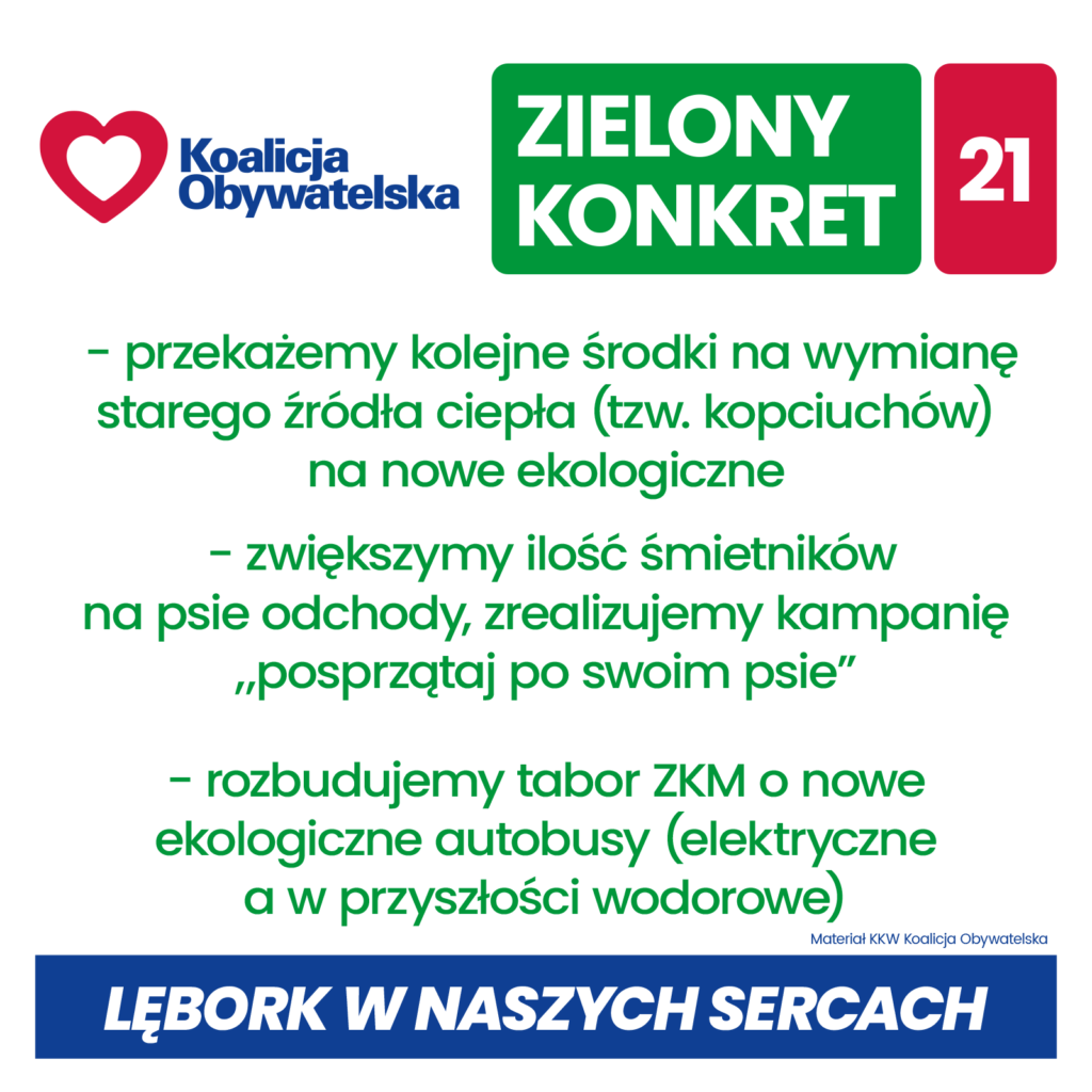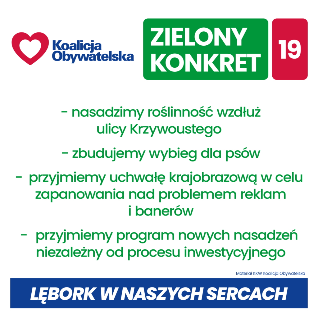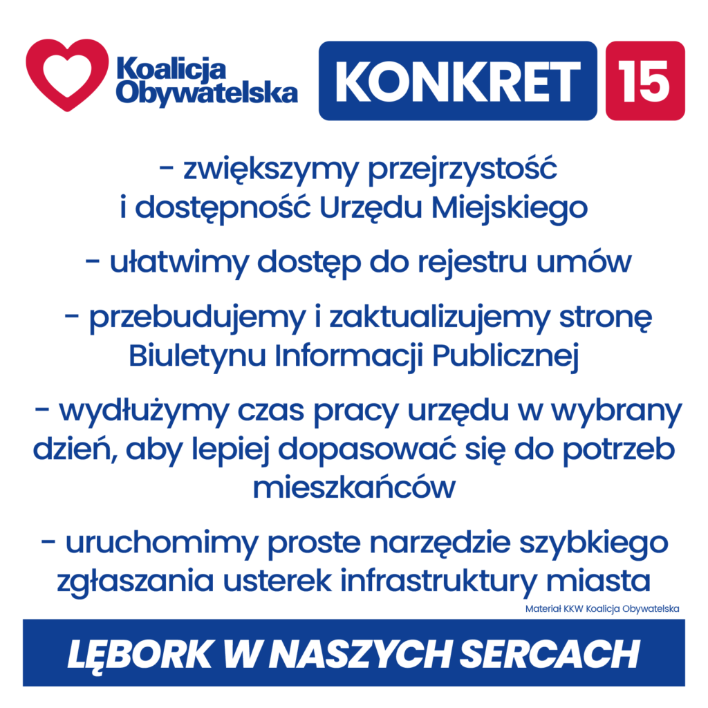 Konkrety Koalicji Obywatelskiej dla Lęborka w nadchodzącej kadencji 2024 – 2029: