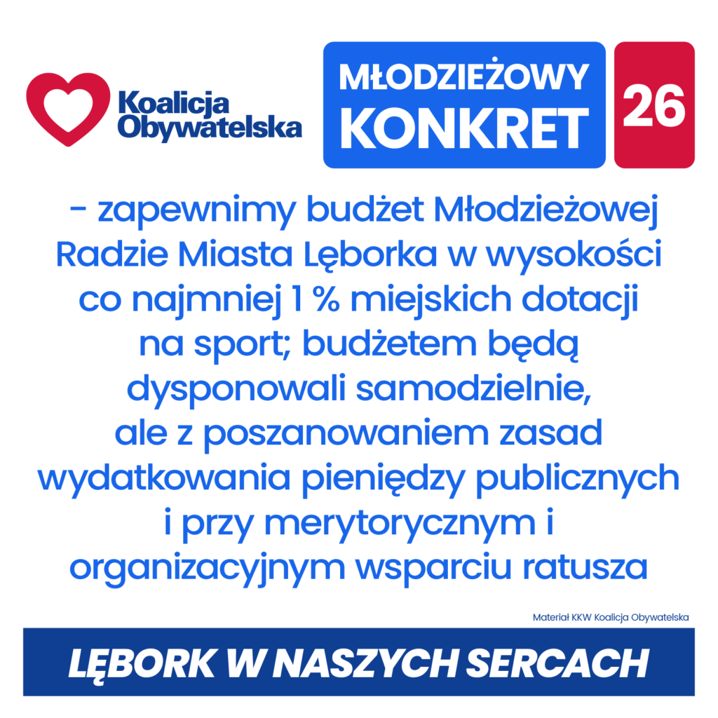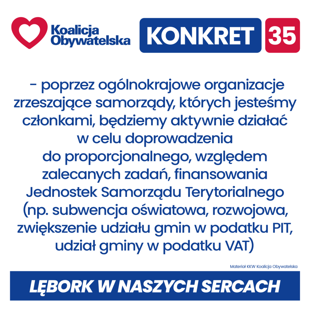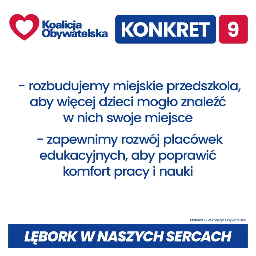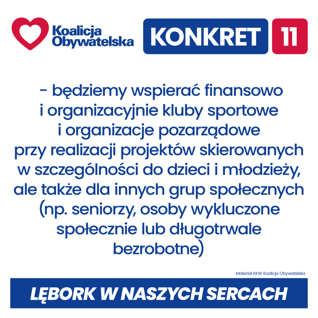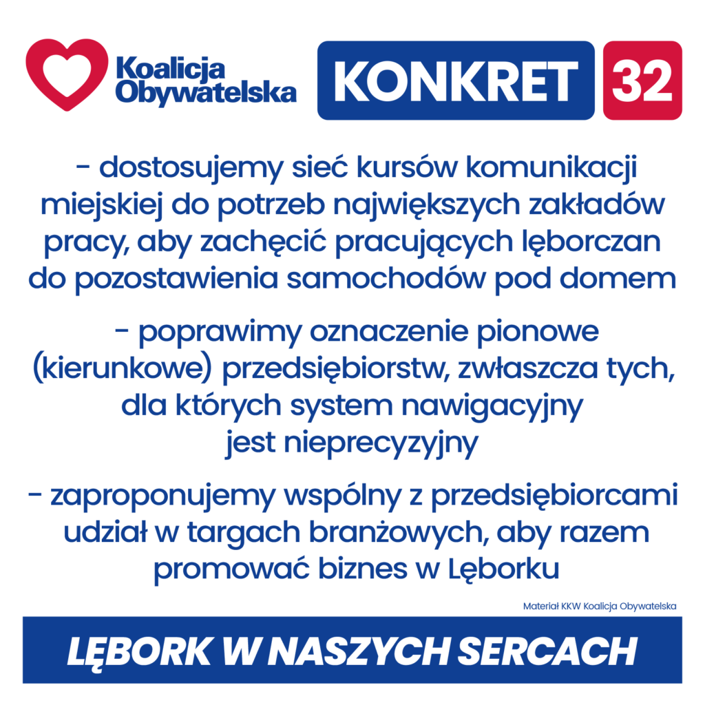 Konkrety Koalicji Obywatelskiej dla Lęborka w nadchodzącej kadencji 2024 – 2029: